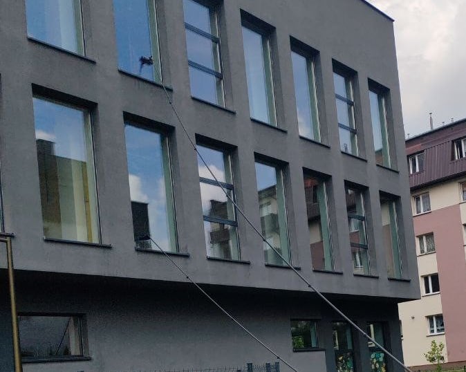 Mycie wysokościowe przy użyciu wody demineralizowanej.